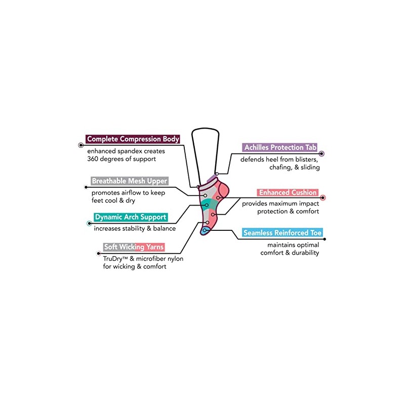 - [TARGETED COMPRESSION ZONES] Compression is proven to improve blood flow, move faster, react quicker, and use less energy. Targeted compression zones provide varying levels of support from moderate to extra firm. These low cut socks are designed to promote blood circulation and oxygen flow preventing cramping, fatigue, swelling, and helps in muscle recovery