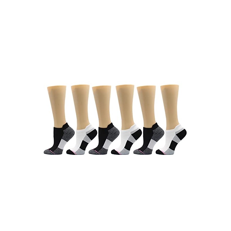 Dr. Motion Womens Low Cut Cushioned Breathable Compression Ankle Socks with Arch Support 6 Pairs (Black Grey)