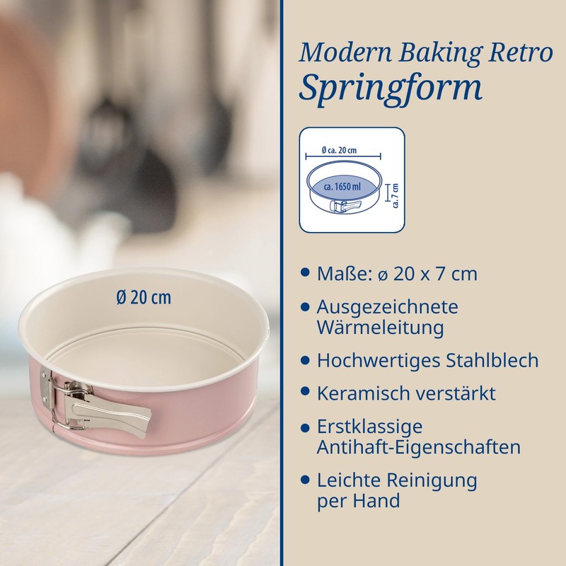 Dr. Oetker Springform Ø 20 cm mit Flachboden, runde Kuchenform aus der Serie "Modern Baking - Retro Design" mit zweifarbiger, keramisch verstärkter Premium-Antihaftbeschichtung (Rosa/Creme)