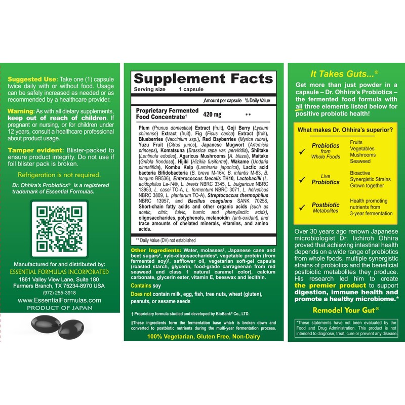 - PREBIOTICS AND POSTBIOTICS: We all know the benefits of Probiotics, but Dr Ohhira took it two steps further by also including PREbiotics and POSTbiotics in his formulation. Discover the Dr. Ohhira Difference today.