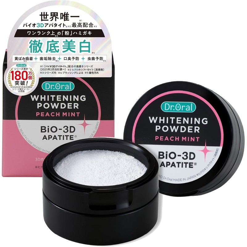 Dr. Oral 3D Whitening Powder – Peach Mint Flavor Advanced Teeth Whitening with Bio-3D Apatite, Eggshell Apatite, Baking Soda & Polyphosphate – Removes Stains, Plaque & Freshens Breath (0.9 oz / 25 g)