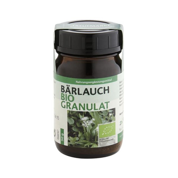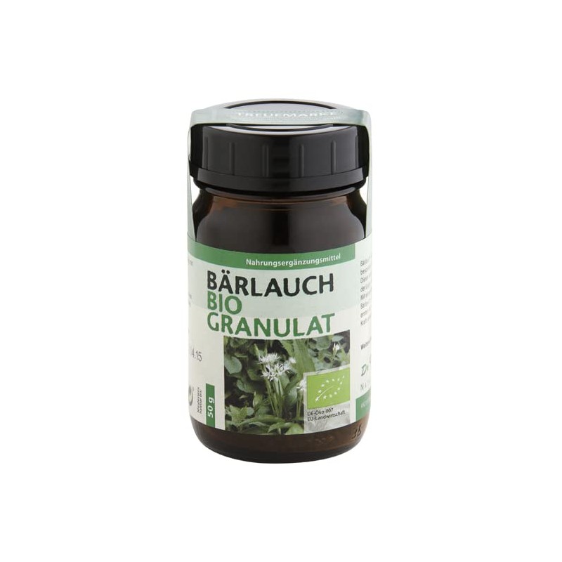 The proven Dr. Pandalis wild garlic fresh leaf granules here in pure organic quality as wild garlic organic granules. For centuries, Europeans have used wild garlic as a domestic food plant. Over numerous generations, the Central European organism acquired a memory pattern for this plant.