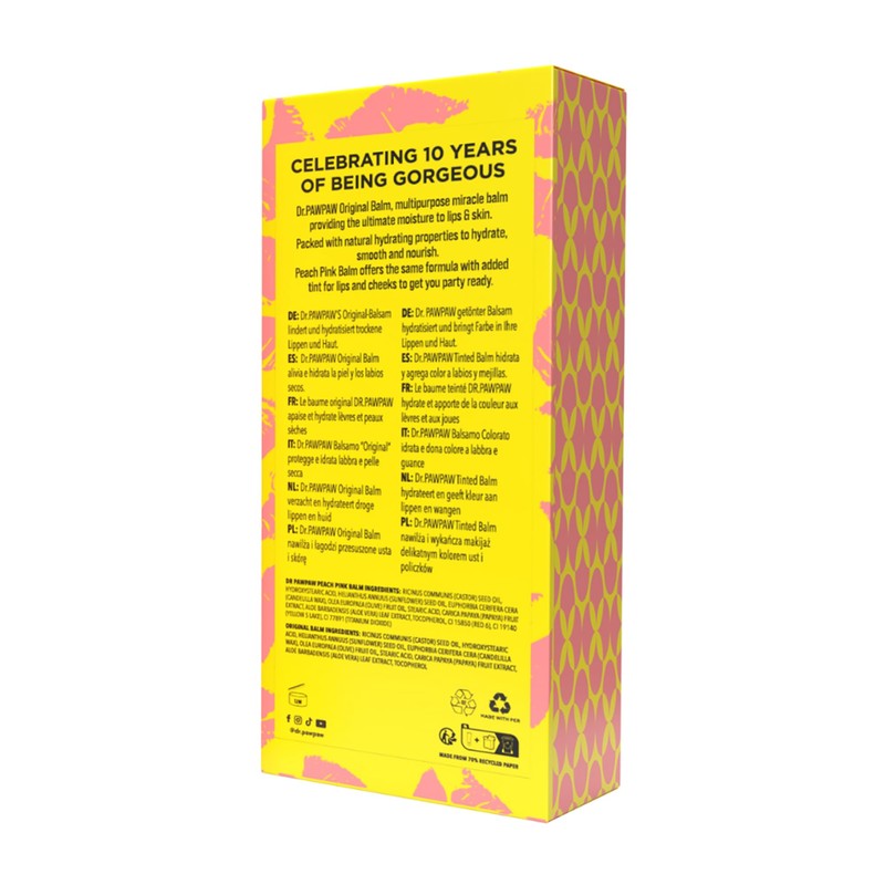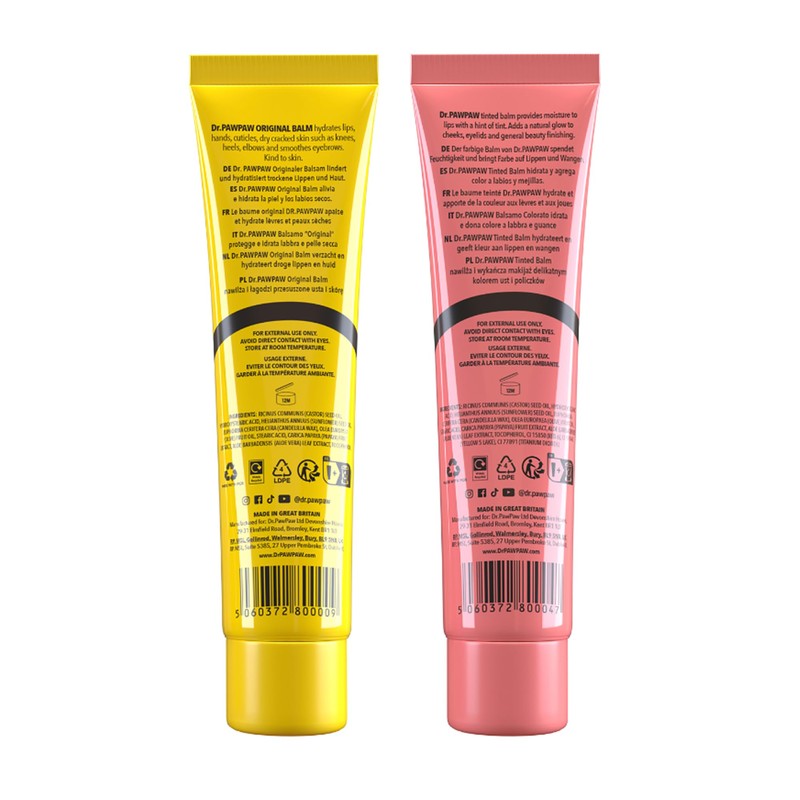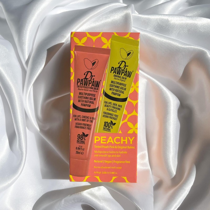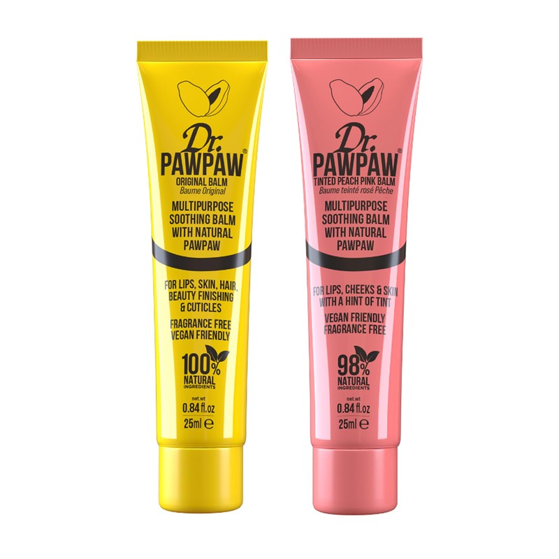Dr. PawPaw Peachy Set - Multipurpose, Soothing and Tinted, Hydrating Lip Balm Giftset - Peach Pink and Original Balm - Gluten Free - 2 pc