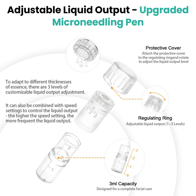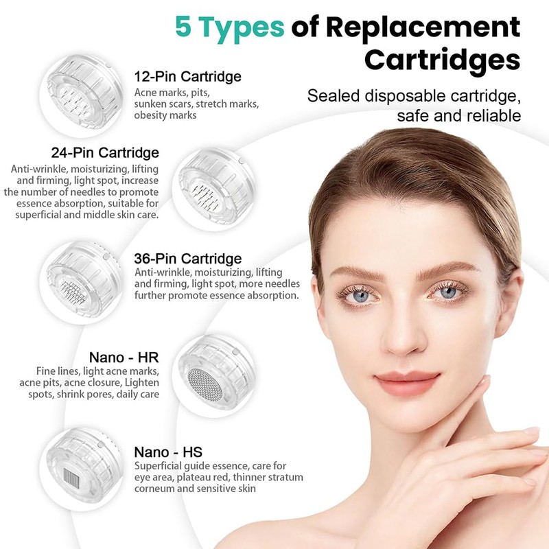 Generous Cartridge Volume: With a capacity of 3ml, each microneedling cartridge is optimized for complete facial care, ensuring thorough coverage and nourishment.