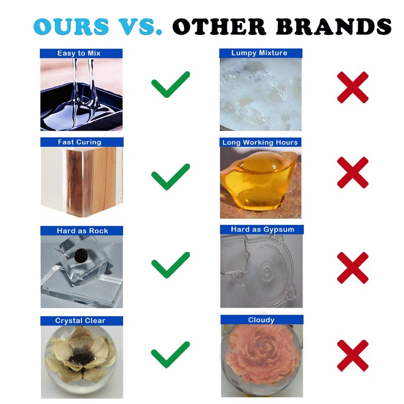 - Excellent formulation: Compared to other alternatives, our product is 100% premium resin and hardener, cures fast, resistant to yellowing from sun exposure, hardens crystal clear and as rock.