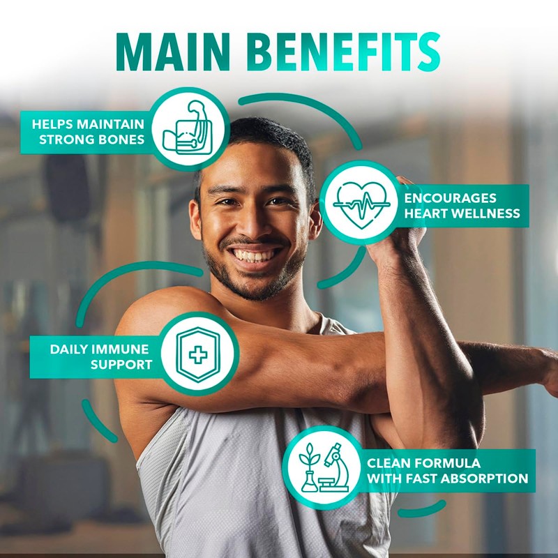 - Holistic Wellness Support – D3 and K2 work together to optimize calcium utilization, help maintain cardiovascular health, and support a healthy immune response.