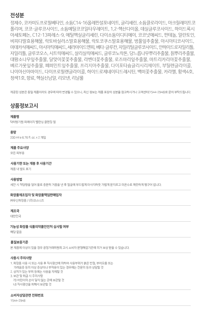닥터방기원 pH밸런싱 클렌징 젤 200ml 2개입x2