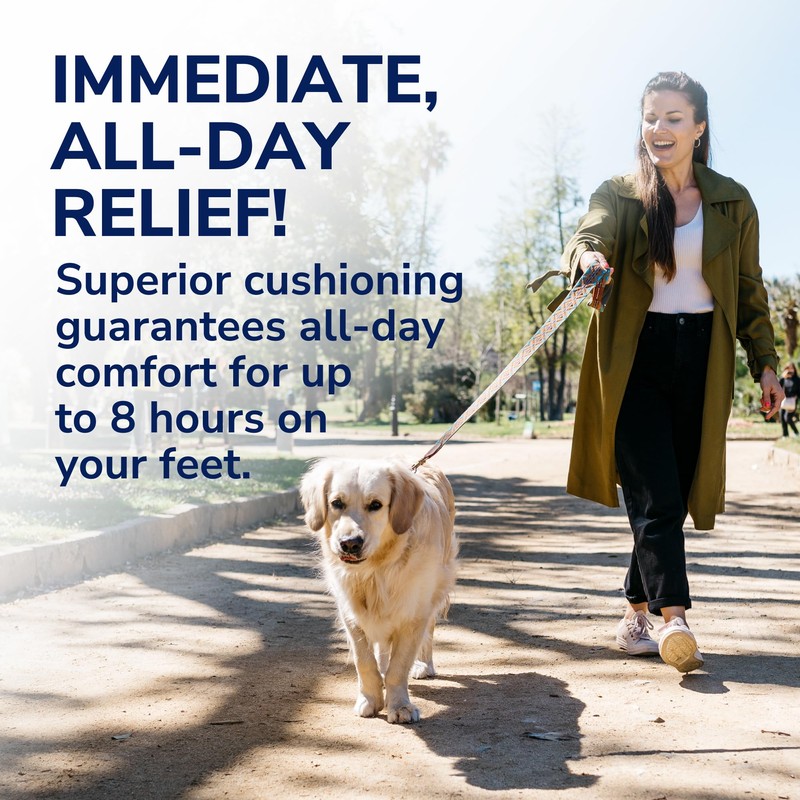 • 1. Provides immediate, all-day lower body pain relief from being on your feet. Protects joints from daily shock and impact and helps prevent pain from coming back.
