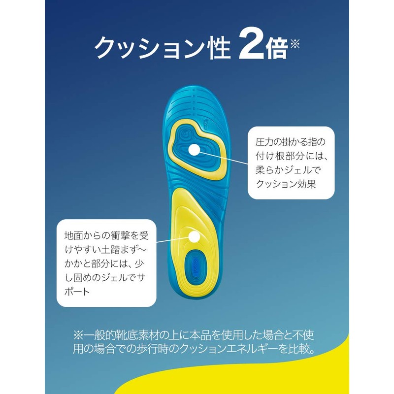 - It provides double-cushioning property.It lets the impact while walking be incredibly comfortable. **Compared the cushioning energy when walking with this product on top of the general sole material and without it.