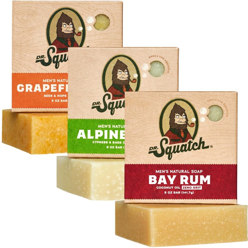 Dr. Squatch All Natural Bar Soap for Men, 3 Bar Variety Pack, Bay Rum, Alpine Sage, Grapefruit IPA - Men's Bar Soap