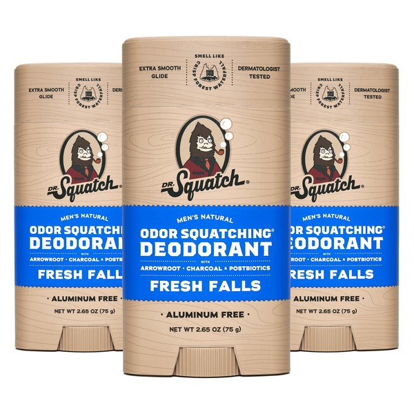 Dr. Squatch Dr. Squatch Natural Deodorant for Men 3 Pack Fresh Falls C Odor-Squatching Men's Deodorant Aluminum Free (2.65 oz, 3 Pack)