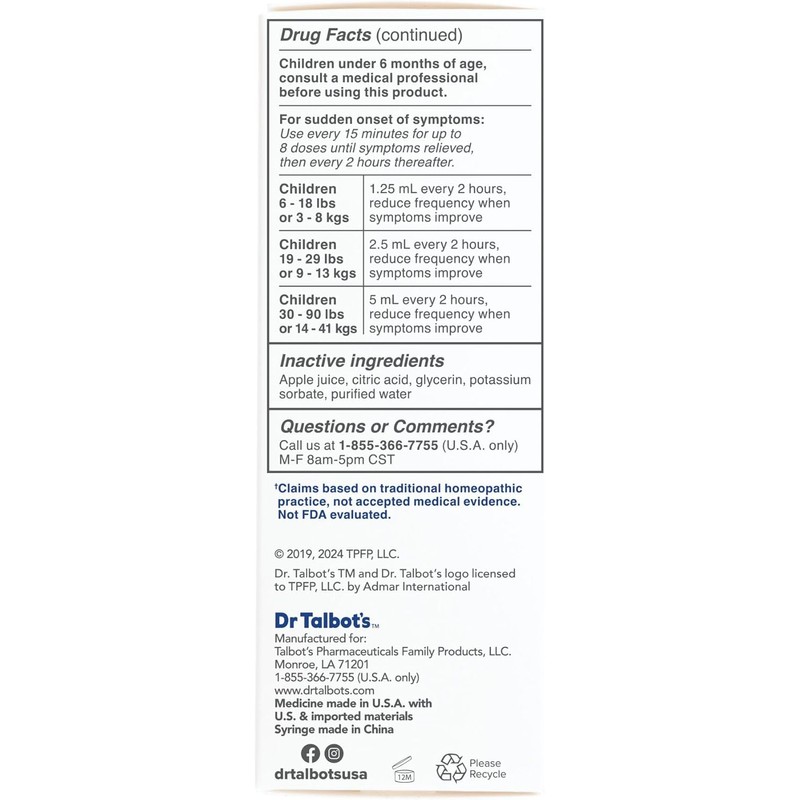 Dr. Talbot's Infant Tummy Ache Relief Liquid Medicine, Naturally Inspired, for Infants, Includes Syringe, Apple Juice Flavor, 4 Fl Oz