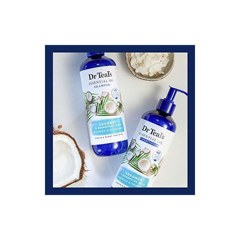 - Enriched with Coconut essence and a blend of complementary essential oils, Dr Teal's Coconut Nourish & Moisture Essential Oil Conditioner infuses hair with natural moisturizers and essential nutrients, helping to nourish and replenish dry, damaged hair.
