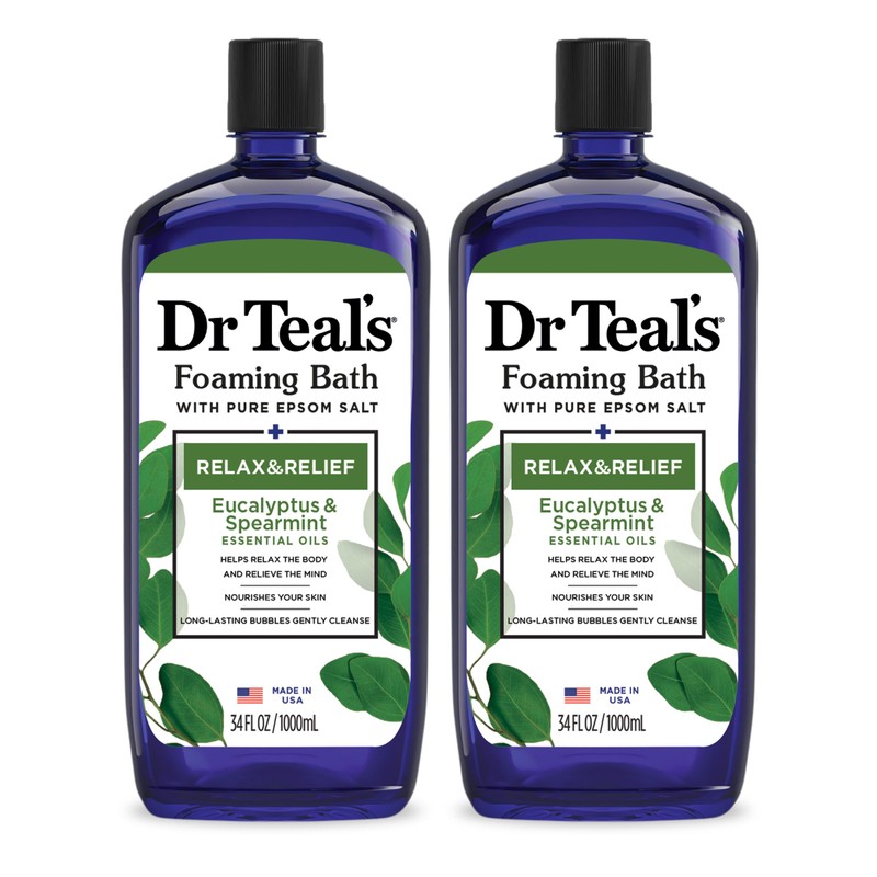 Dr Teal's Dr Teal's Foaming Bath with Pure Epsom Salt, Relax & Relief with Eucalyptus & Spearmint, 34 fl oz (Pack of 2)