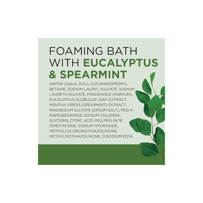 Its time to relax and feel true relief with Dr Teals Relax & Relief Foaming Bath with Eucalyptus, Spearmint & Pure Epsom Salt. This is the perfect formula for a truly relaxing evening of rejuvenating scents and moisturizing ingredients. We crafted this unique blend of essential oils to not only soothe your aching muscles, but to bring enriching moisture to your skin. Experience long-lasting bubbles that gently cleanse the skin and our signature Pure Epsom Salt (Magnesium Sulfate) ingredient that eases your sore muscles while you enjoy your bath. Dr Teals Foaming Baths are paraben-free, phthalate-free, cruelty-free, and vegan.