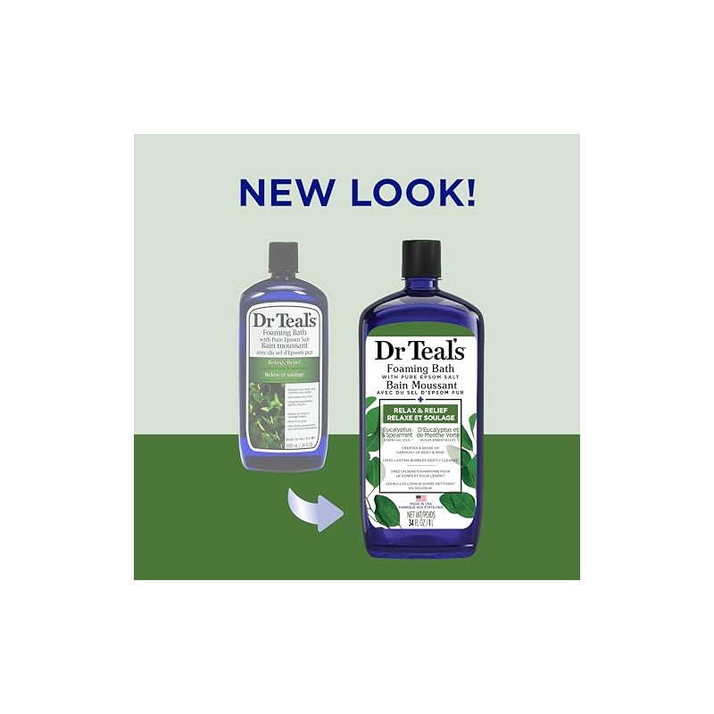 Dr Teal's Dr Teal’s Foaming Bath with Pure Epsom Salt, Relax & Relief with Eucalyptus & Spearmint, 34 fl oz (Packaging May Vary)