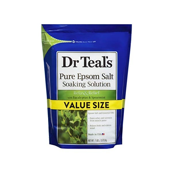 - Relax the body and mind with Dr Teal's Relax & Relief Pure Epsom Salt Soak with Eucalyptus & Spearmint Essential Oils.