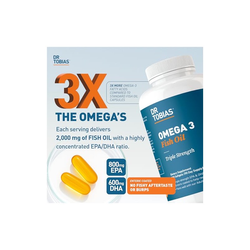 Dr. Tobias Aceite De Pescado Omega 3, 2000 Mg De Triple Potencia Con 800 Mg De Epa Y 600 Mg De Dha Por Racin, Suplementos De Aceite De Pescado Omega