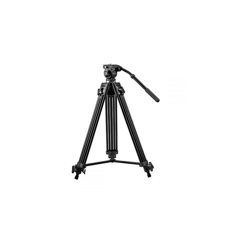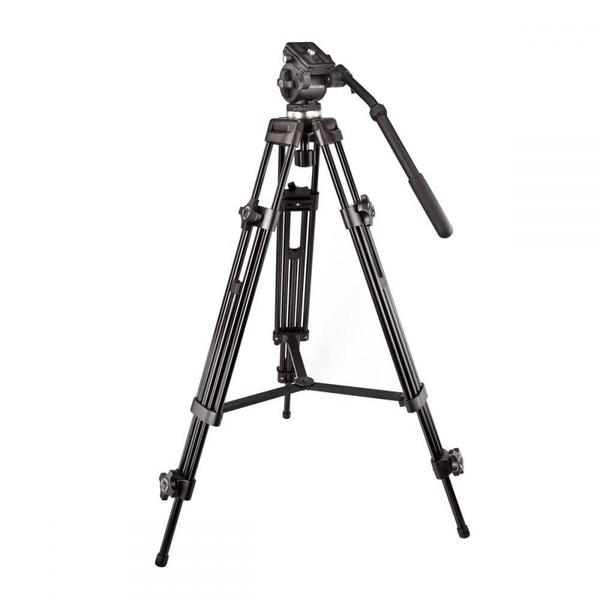 Dracast DVT-17 Professional Heavy Duty Photo / Video Tripod with Fluid Head The Dracast DVT-17 with Fluid Head is a professional-grade photo / video tripod made from anodized aluminum that can support loads up to 13.2 lb. The DVT-17 offers many features usually only found on more expensive models which has made it a staple in the Dracast catalog for many years. The fluid head provides smooth operation, and features a half-ball mount with a diameter of 2.16 in. One pan bar is included with the kit. Its 3-stage telescopic leg design allows you to adjust the height of the tripod from 33 inches to 54 inches to 74 inches. A middle spreader and passive counterbalance provide enhanced stability to the entire system. The Dracast DVT-17 also has separate pan and tilt locks, and a rubber level for precision leveling. Its provided quick release plate features a standard 1/4″-20 and 3/8-16” mounting screw with a video pin. The head’s tilt angle is adjustable from +70° to -90°. In the Box x1 Dracast DVT-17 Professional Photo / Video Tripod x1 Fluid Head x1 Carry Bag for DVT-17