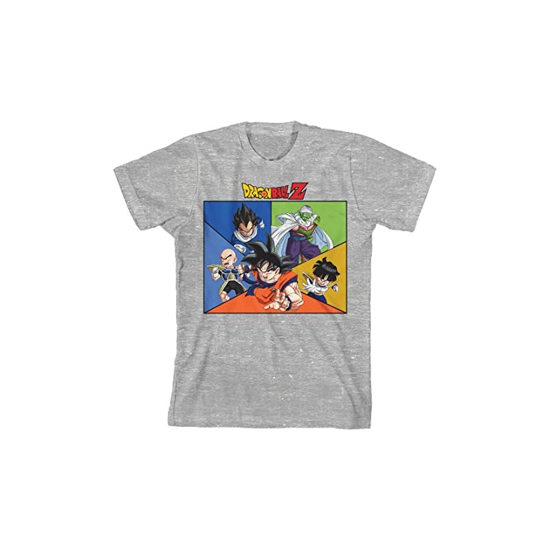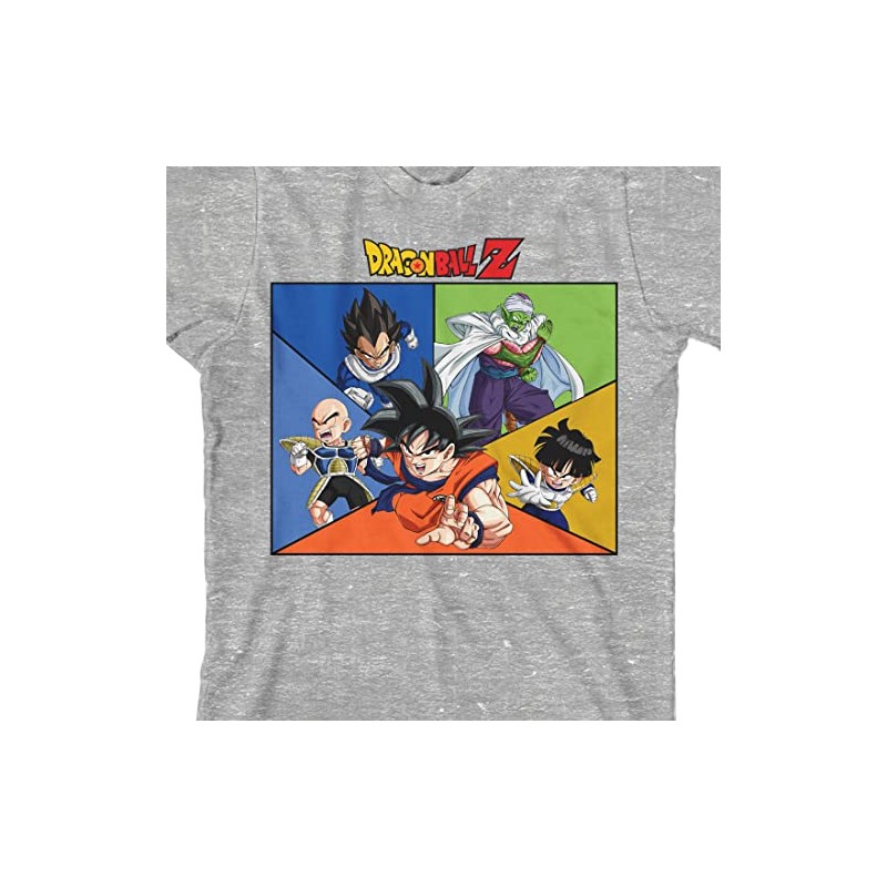 - CUSTOM DESIGN: Goku, Vegeta, Piccolo and other characters appear on a colorful background on this graphic tee while the anime's logo appears in red and yellow letters above the image. Dragon Ball Z fans will love this fun design.