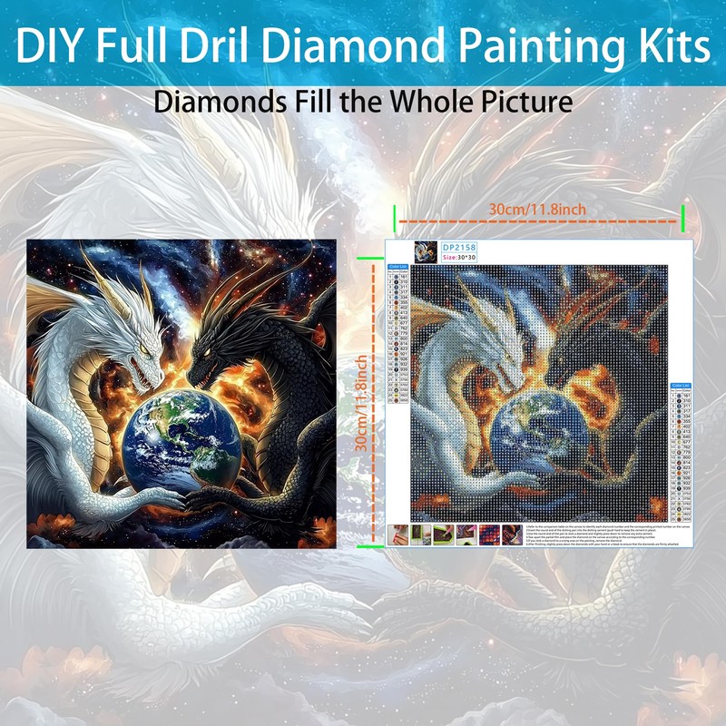 Dragon Diamond Art Kits for Adults,Fantasy Dragons Diamond Painting Kits for Beginners, 5D DIY Animal Full Drill Round Diamond Painting Gem Art for Adults, Home Wall Decor 12 x 12 Inch