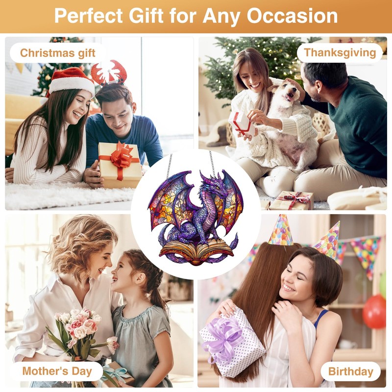 - 【Vibrant Stained Glass Effect Acrylic】 Experience the rich colours and intricate artistry of stained glass, reimagined in durable acrylic. This acrylic dragon ornament boasts a stunning stained glass effect, creating a vibrant and eye-catching window art piece that will transform any space.