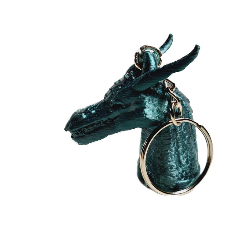 Dragon Head Keychain Model 3d Printed Reptile 3D Bust With Silver Colored Key Ring Backpack Charm (Emerald Green)