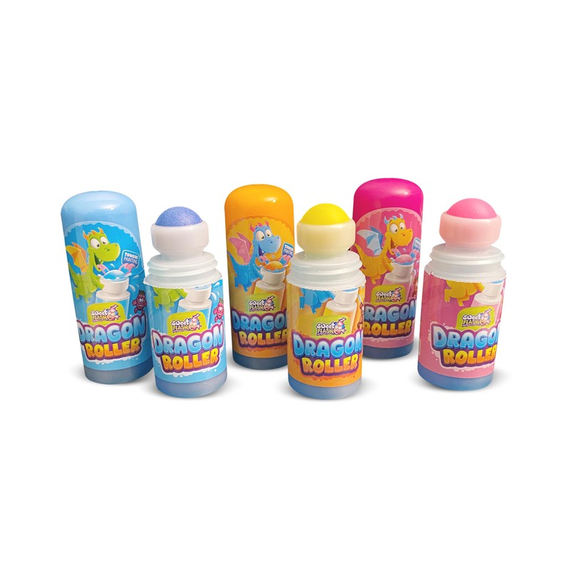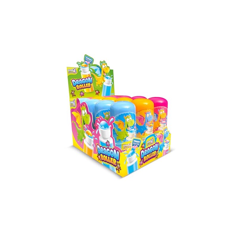 Dragon Roller 12 Display - Liquid Confectionery in Raspberry, Strawberry & Cola - Roller Applicator for Tongue Colouring - Sweets for Parties, Children's Birthdays or Large Events
