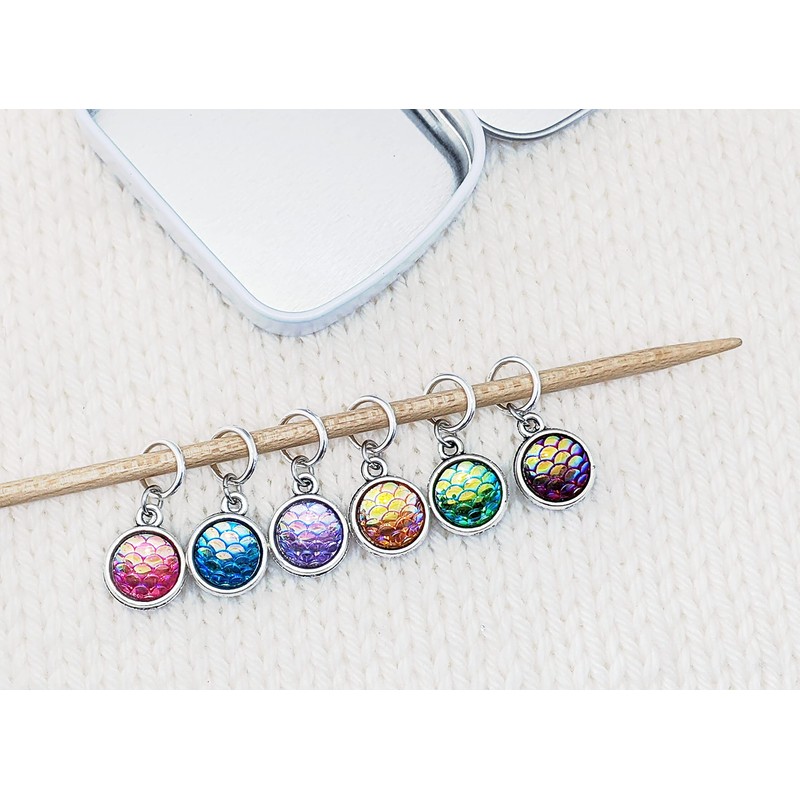 - These gorgeous iridescent stitch markers take you right into a fantasy realm. From the fiery red glow of a dragon's scales to the mystical green of a mermaid's tail, these markers are sure to add a touch of magic to your knitting projects. They're a reminder that even in the midst of a mundane task, we can still find moments of magic and delight. With a little bit of dragon magic and mermaid charm, you might just find yourself creating something truly spectacular!