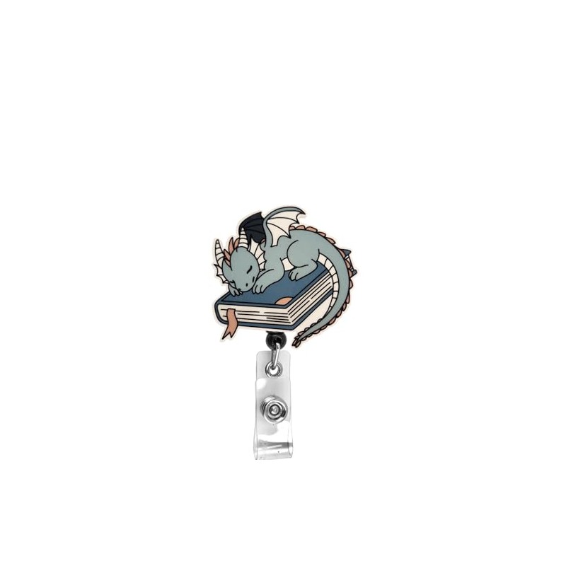 Dragon Sleeping On Book Badge Reel, Interchangeable Badge Reel Topper, Cute Retractable Badge Reel ID Holder For Nurse, Student, RN (Topper with Alligator Clip Reel)