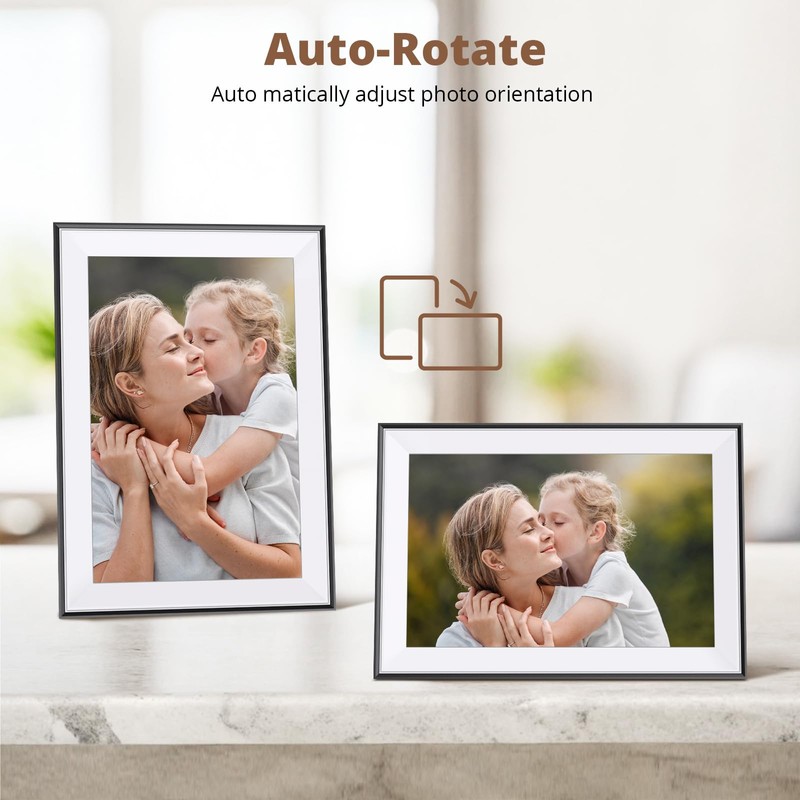 - WONDERFUL PICTURE DISPLAY: This device features a high-quality 10.1'' touch screen display with 1280*800 resolution and a 16:9 aspect ratio that beautifully showcases your precious memories. Customized sleep mode and auto-rotate settings enhance your viewing experience. You can position this frame in either portrait or landscape mode.