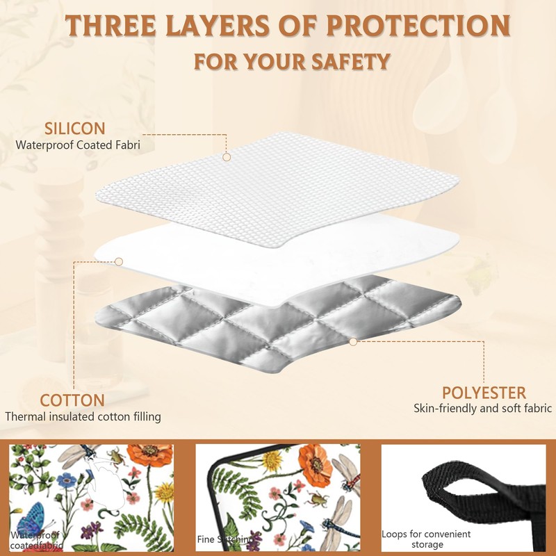 Dragonfly Butterfly Botanical Pot Holders Set of 2, Kitchen Heat Resistant Potholder for Microwave Cooking Baking Oven End Dishes and BBQ