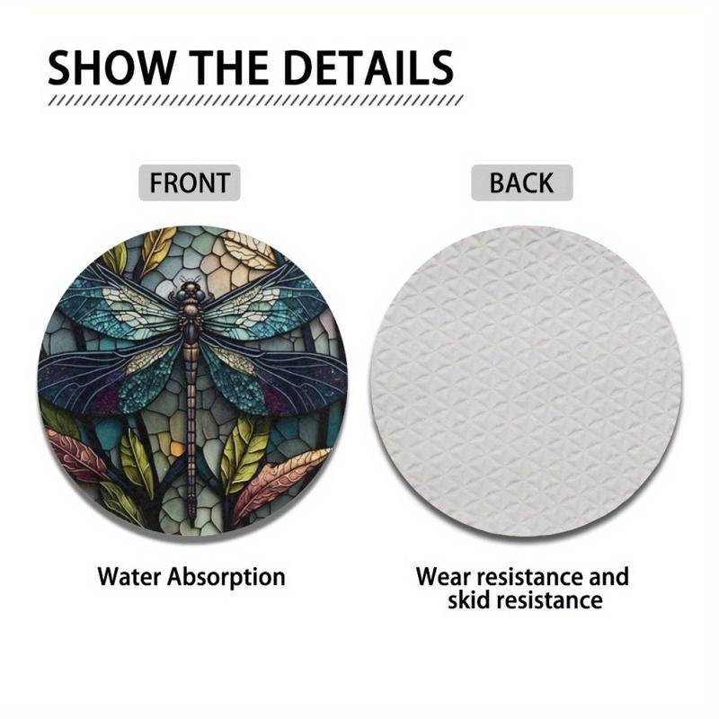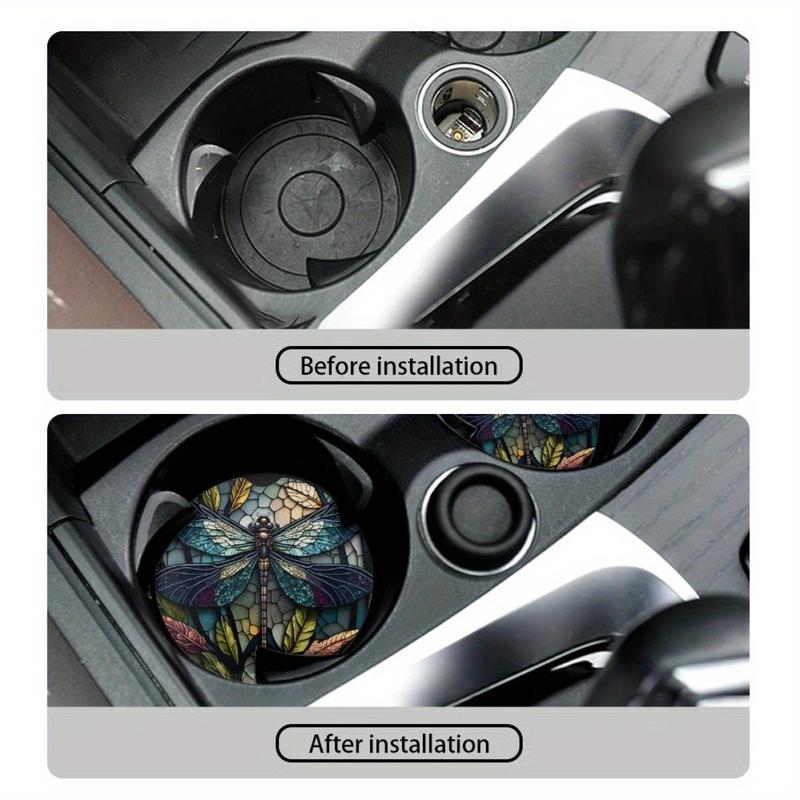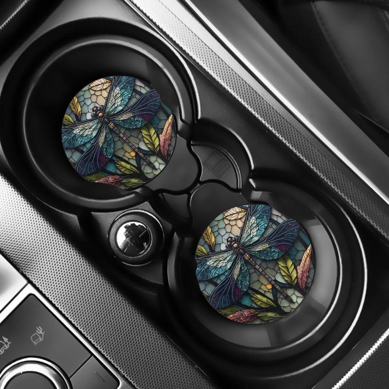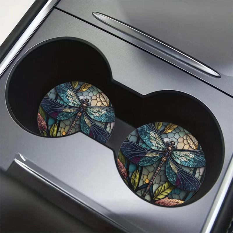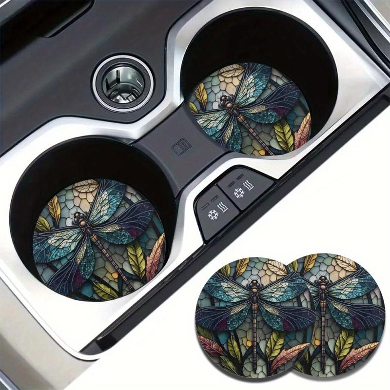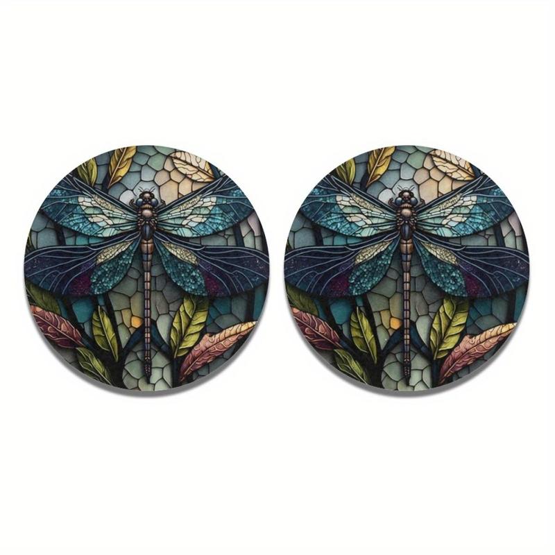 Dragonfly Design Car Coaster, Round Anti-slip Cup Holder Decorative Cup Mat, Car Cup Holder Coaster For Gift, Car Decoration