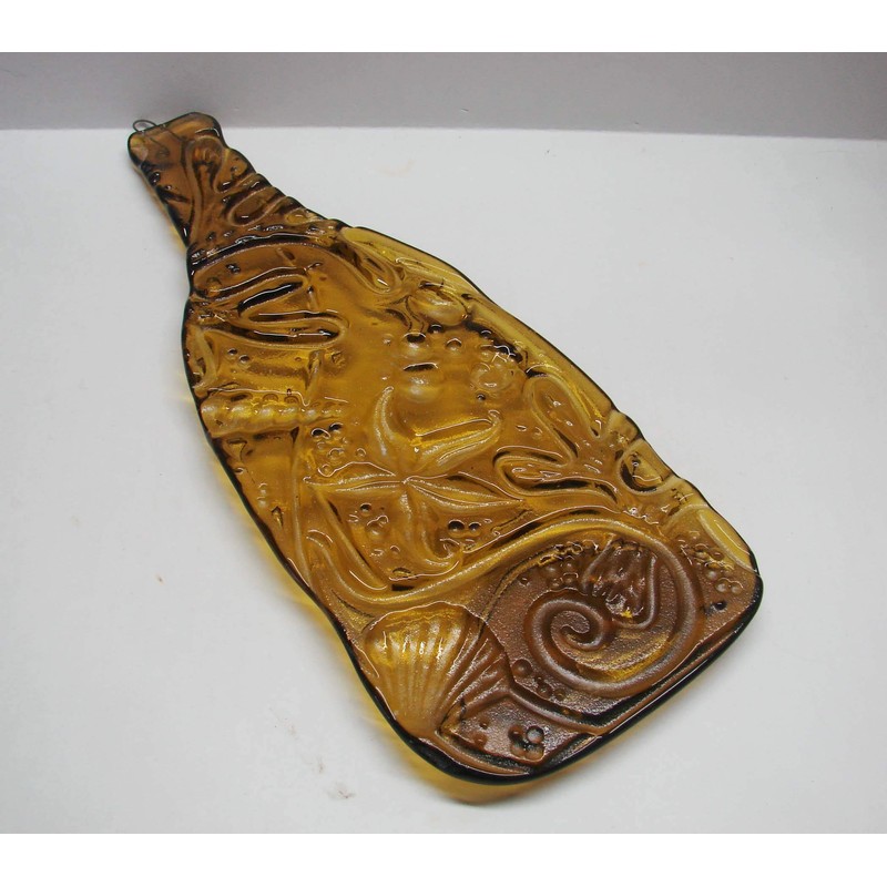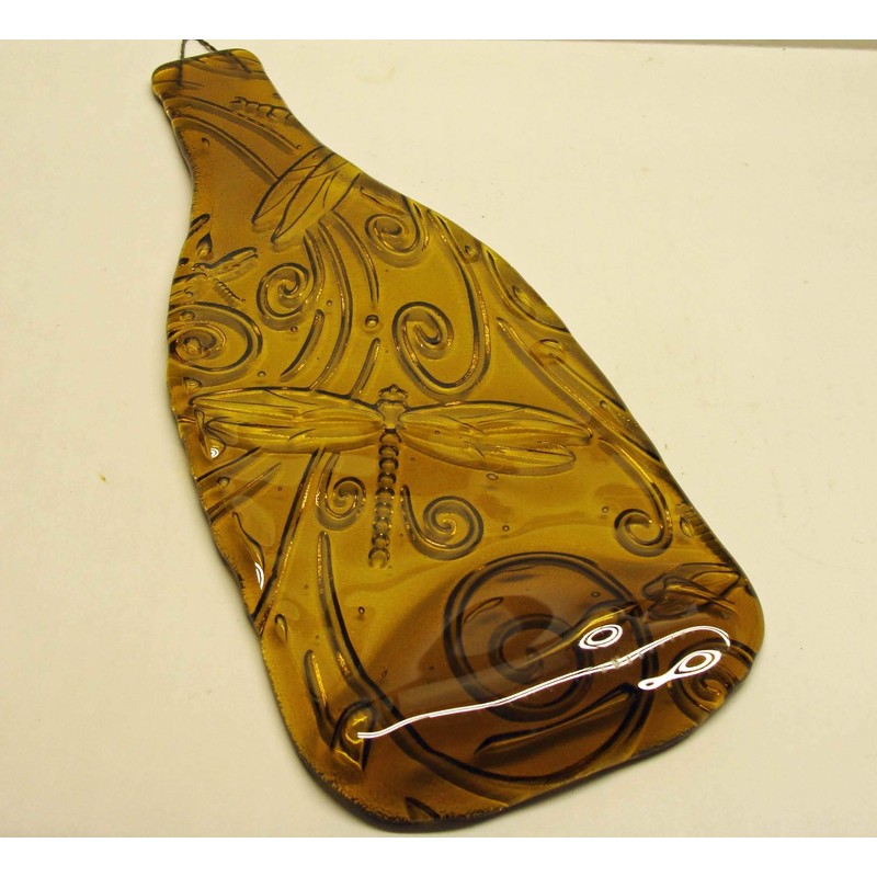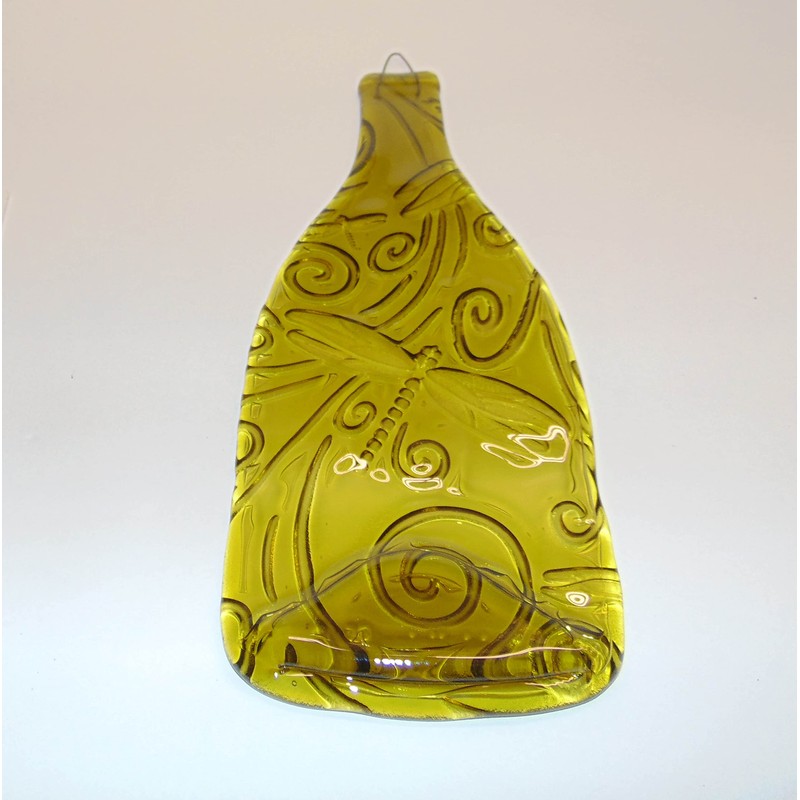 Dragonfly Embossed Yellow Wine Bottle Melted Flat UpCycled as Cheese Platter ...