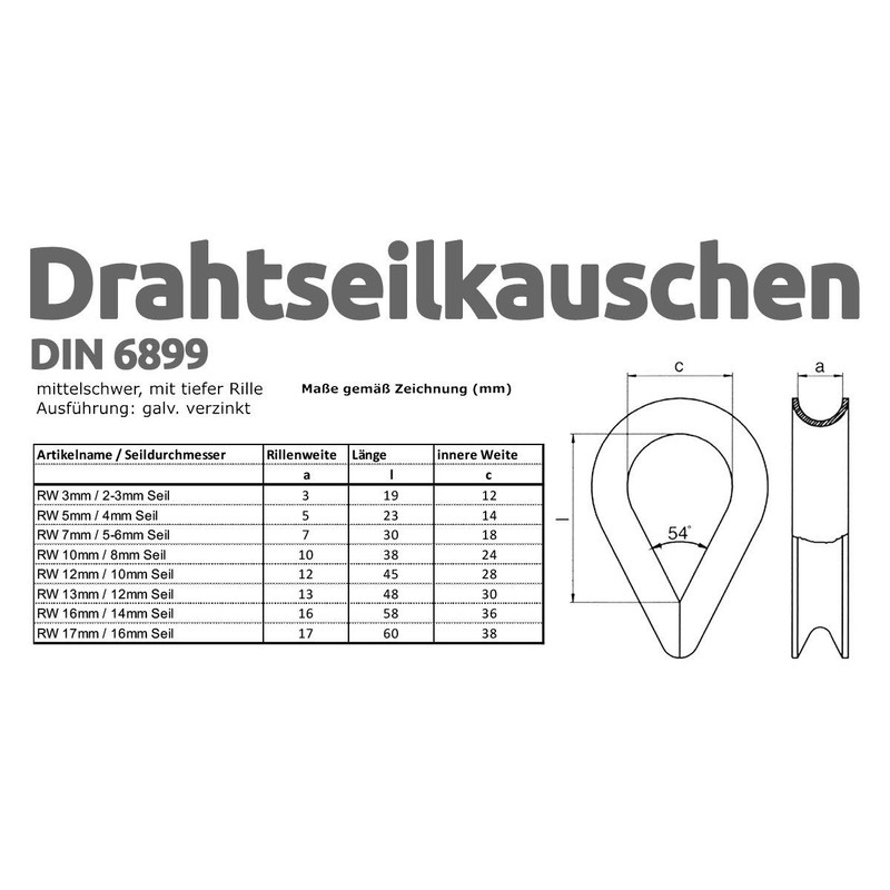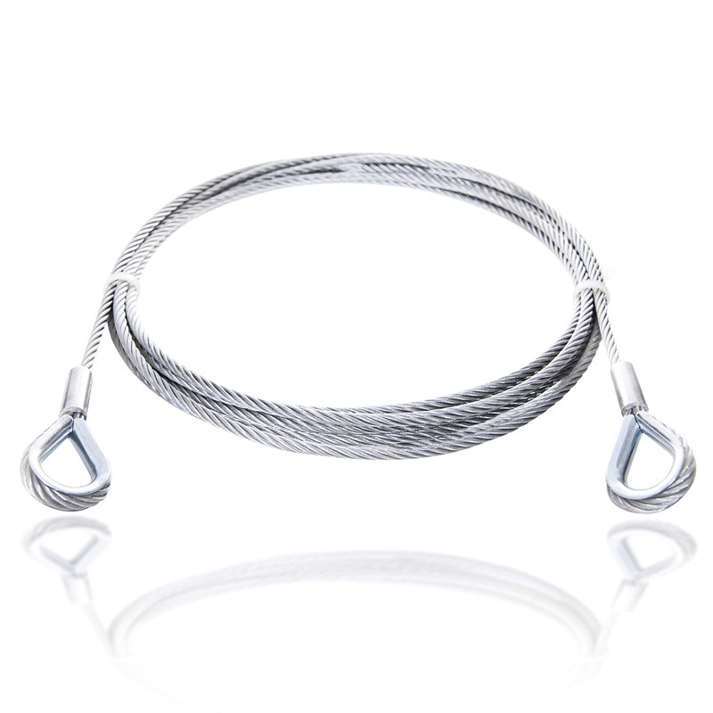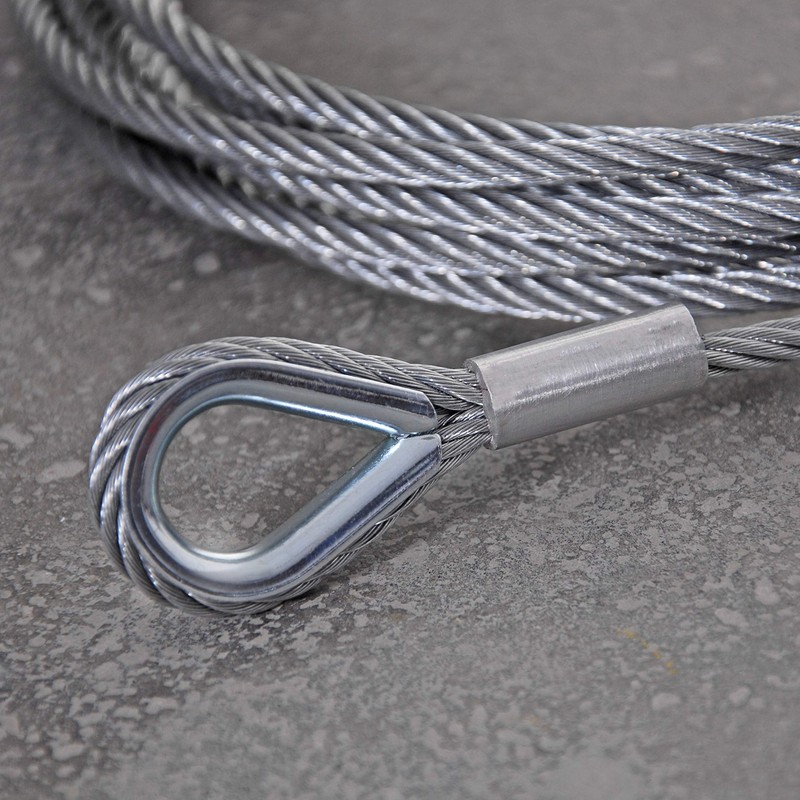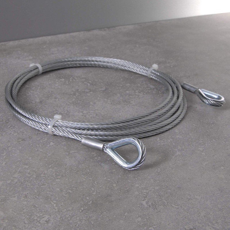 - Tested quality: galvanised wire rope with thimbles made of high-quality industrial steel pressed with thimbles of DIN 6899. Available in thicknesses from 2 mm - 16 mm and lengths of 0.5 m - 50 m.