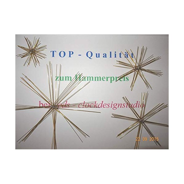 Das Set beinhaltet : 10 Drahtsterne 5 cm ,10 Drahtsterne 8 cm, 10 Drahtsterne 10 cm ,10 Drahtsterne 15 cm. Draht 0,5 mm. Unsere Drahtsterne eignen sich besonders gut zum einfachen Herstellen wunderschöner Weihnachtssterne als Baumschmuck oder Fensterhänger. In Kombination mit unseren Dekoperlen erhalten auch ungeübte Bastler schnell ein hervorragendes Ergebnis. Unsere Drahtsterne bestehen aus 100 % Messingdraht und werden komplett in Deutschland hergestellt. Das Produkt ist nickelfrei und entspricht somit der DIN EN 1811. Der Einsatz hochwertiger Materialien und die qualitätsbewusste Produktion machen ein Brechen des Drahtes beim Ösenbiegen sowie ein Ablösen der Messingstäbe am Lötpunkt nahezu unmöglich. Unsere Drahtsterne gibt es in den Größen 5 cm / 8 cm / 10 cm / 15 cm und 20 cm mit 8 Strahlen sowie als Doppelstern 5/10 cm , 8/10 cm , 10/15 cm und 15/20 cm mit 12 oder 16 Strahlen. Sehen Sie sich dazu unser komplettes Sortiment in den verschiedenen Angeboten an.
