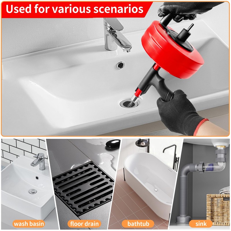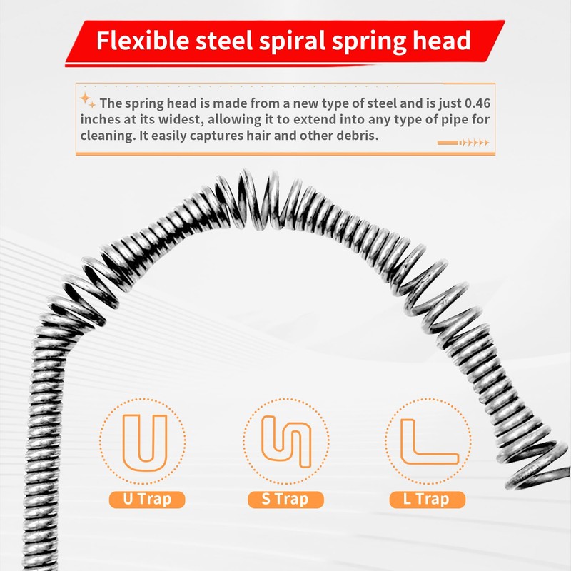 - MUlTI-FUNCTIONAL DRAIN SNAKE: Our plumbing snake clog remover is designed for household use, suitable for sinks, kitchen, bathroom, utility sinks, bathtubs, and shower drains. The drain auger comes with a special tip that can quickly clear hair, food residue, toilet paper, and hair clogs. Trying to clear a clog yourself may not be an easy task, but once you complete this job, it will continue to save your home thousands of dollars