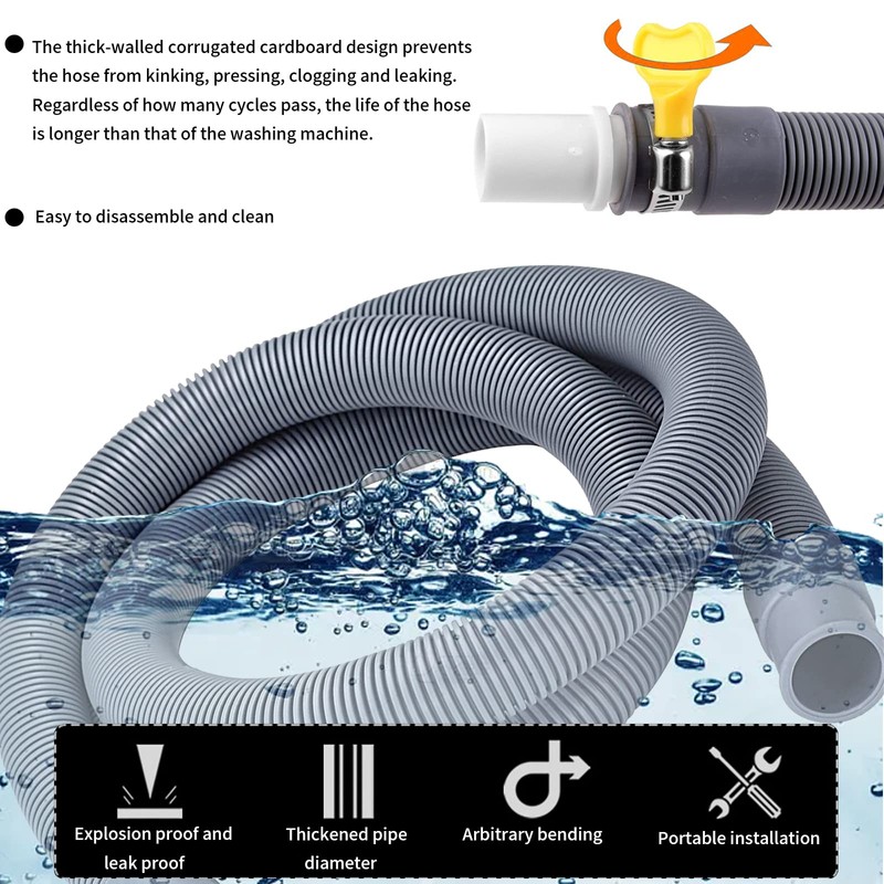 - Robust and durable: our washing machine drain hose is made of polypropylene material with a thicker body, medium hardness, not easy to deform or break to ensure smooth drainage. It is not only dense and does not drip.
