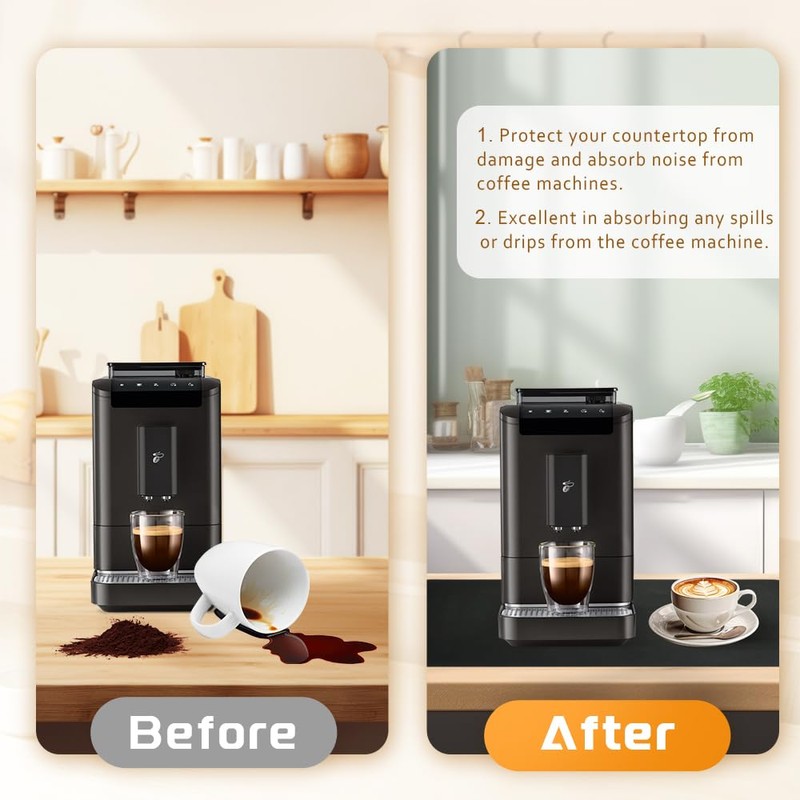 - 【Coffee Maker Mat for Countertops】This espresso mat is made of super absorbent material, it's super absorbent, soft and rubbery, with enough weight to stay flat. This coffee bar mat can effectively hide coffee stains, milk stains, and any other dark and messy stains.This coffee mat is the perfect finishing touch for your little coffee corner!