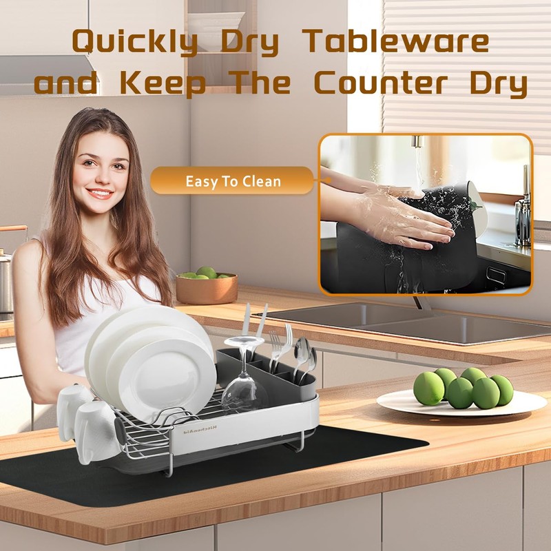 - 【Easy to Clean】 Cleaning it is a breeze—just rinse it under running water or wipe it with a damp cloth, then hang to air dry. This absorbent dish drying mat can not be washed in washing machine or dishwasher.