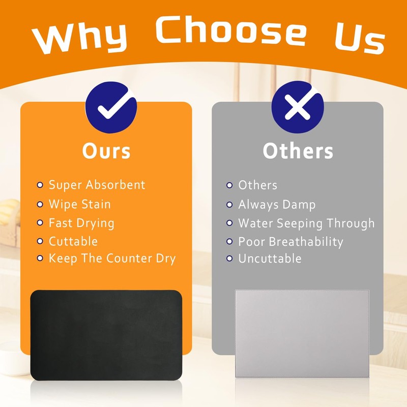 - 【Tips】Please choose the size according to your own needs. Please don't twist because kitchen drying mat may leave wrinkles on the surface.