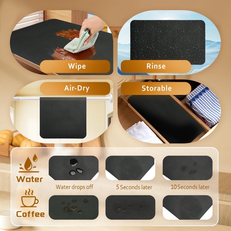 - 【Multi-Purpose】The 11.81"x19.68" size doesn’t take up too much counter space, striking the perfect balance between capacity and convenience. Kitchens, bars, bathrooms, etc. can be used in situations where you need to keep dry, and can be cut into coffee mats, pet food mat, placemats, etc. according to your needs to meet your different needs.