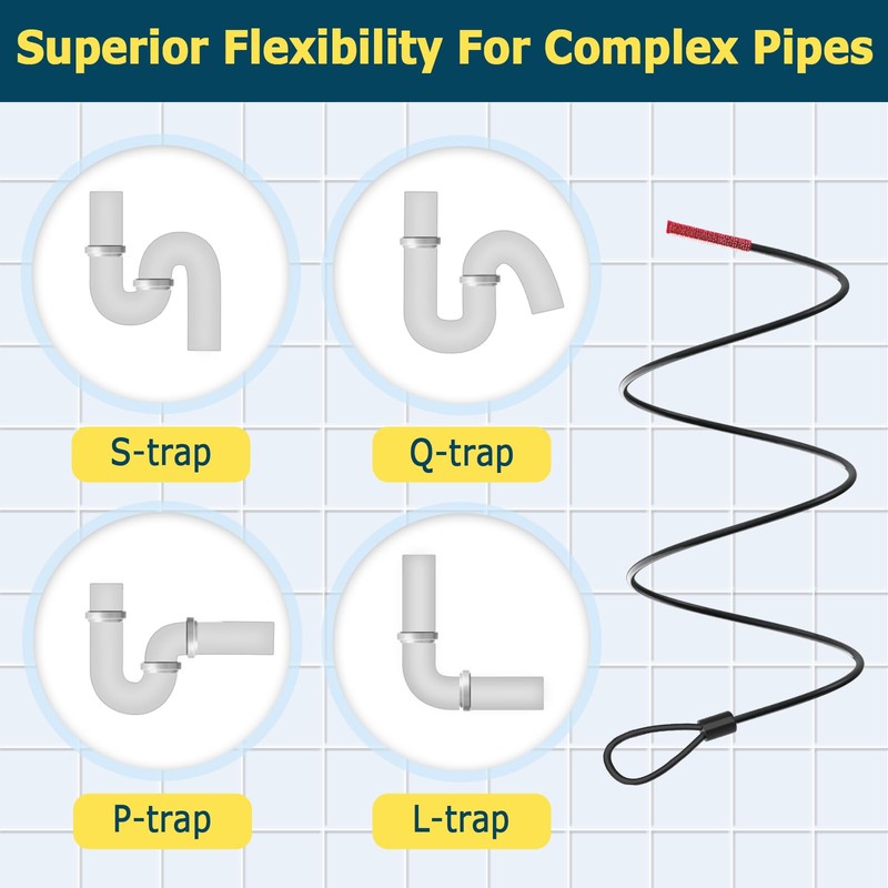 • Anti-break Metal Sink Snake: Compared to plastic snake, our drain snake consist of premium steel that increase rigidity to prevent snapping with 300 lbs of pulling force. With nylon layer, these drain auger are flexible enough to bend into complex trap