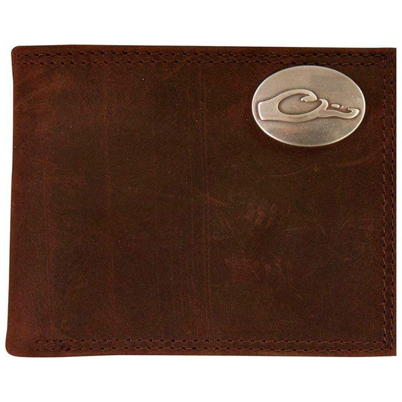 Drake Waterfowl Unisex Durable Compact Leather Bi-Fold Wallet with Metal Logo, 4 Card Slots, Flip ID Window & Bill Pocket