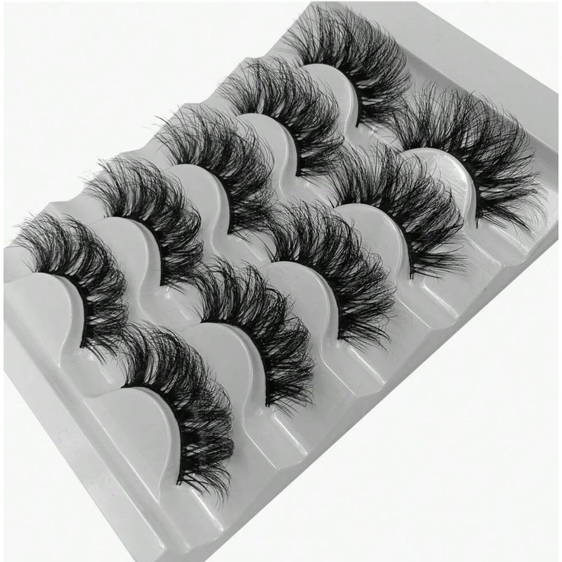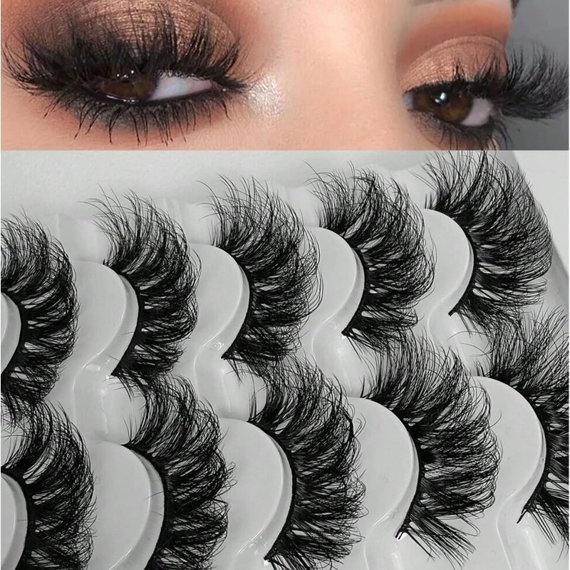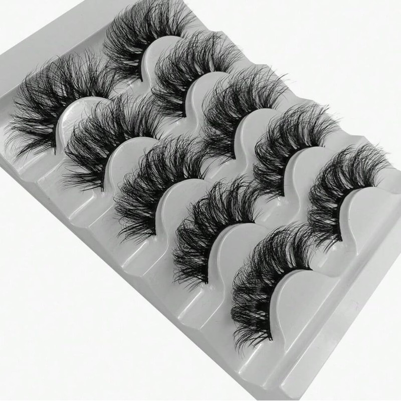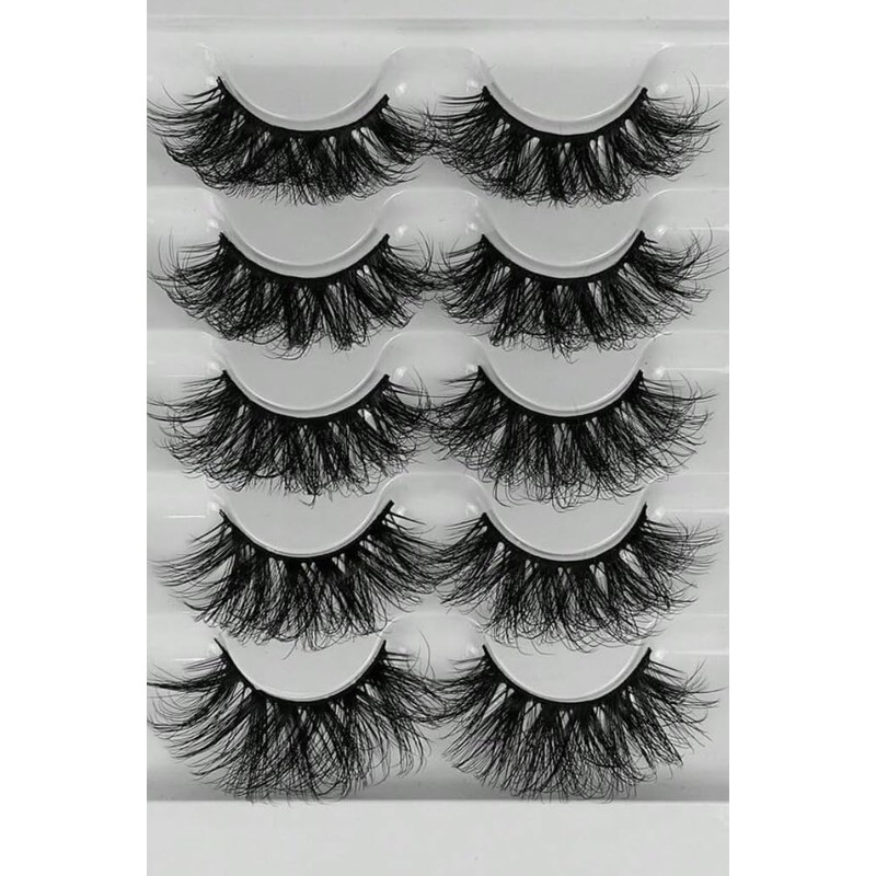 Transform your look with these stunning 8D false eyelashes that deliver show-stopping volume and drama. Each set includes 5 pairs of luxuriously fluffy lashes crafted to achieve a bold, messy-glam aesthetic that appears naturally full. The multi-layered design creates incredible depth and dimension, while the carefully arranged fibers provide a fanned-out effect that makes eyes appear larger and more defined. These lashes feature long, wispy strands that create a striking yet wearable look perfect for special occasions or whenever you want to make a statement. The flexible band ensures comfortable wear and easy application. For best results, apply with lash adhesive (sold separately) and handle with care to maintain their dramatic shape and volume through multiple uses. The set provides excellent value with enough pairs to keep you glamorous for multiple events or daily wear.