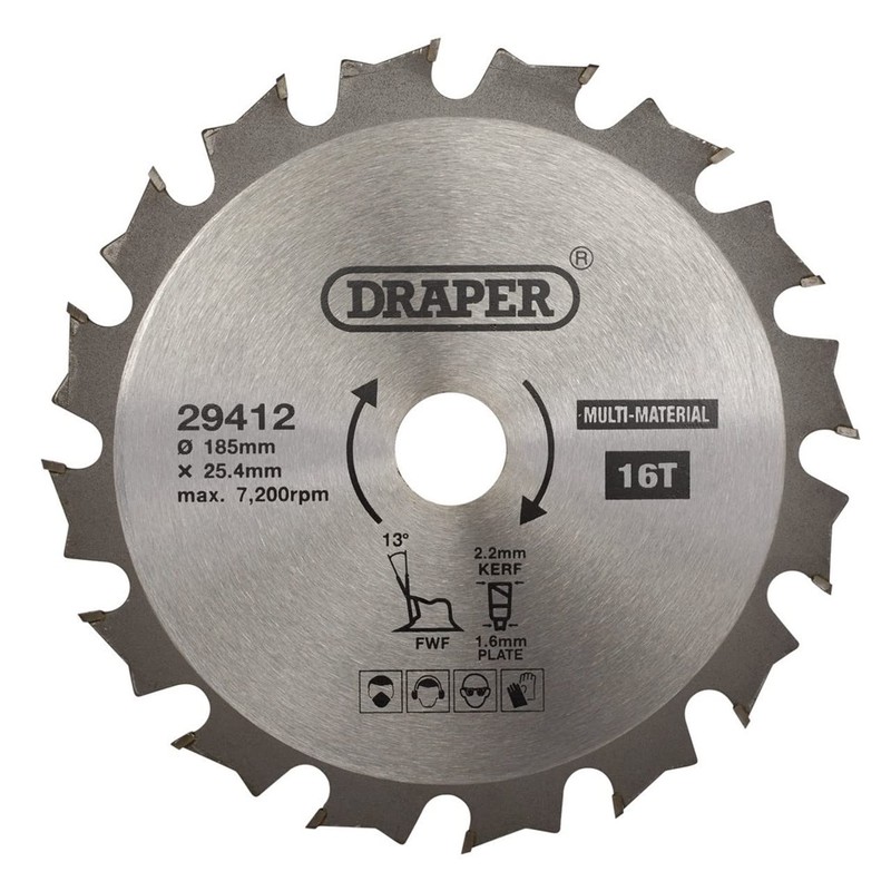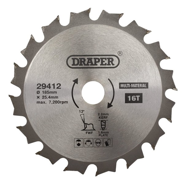 Draper 29412 TCT Multi-Purpose Circular Saw Blade, 185 x 25.4mm, 16T