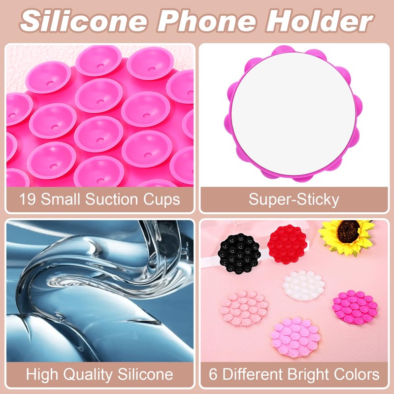 Draupnir 6 Stück Silikon Handy Auto Saugnapf Halterung, Saugnapf Handyhalterung für Alle Handy-Modelle, Mehrzweck Handyhalterung Auto Saugnapf Kfz für Spiegel, Wand, Kühlschrank (6 Farben)