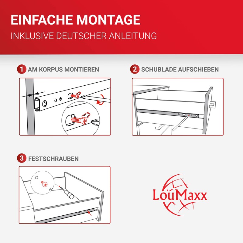 - ✔️Noticeably smooth: smooth running behavior for comfortable insertion and removal of the drawers | Precision pull-out with pull-out stop for a noticeable stop | Integrated rolling protection prevents the balls from rolling out