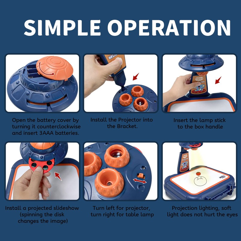 - 🎨【Funny Drawing Projector Table】This interesting drawing projector table can cultivate children's drawing skills and interest in drawing. Come with a high quality projector, just turn down the lights, switch on the projector and insert a preprinted slide, an image will be projected on the drawing board, trace away and then colour in or paint the picture. You can get a perfect work. Make your kids learn and study art the fun way!