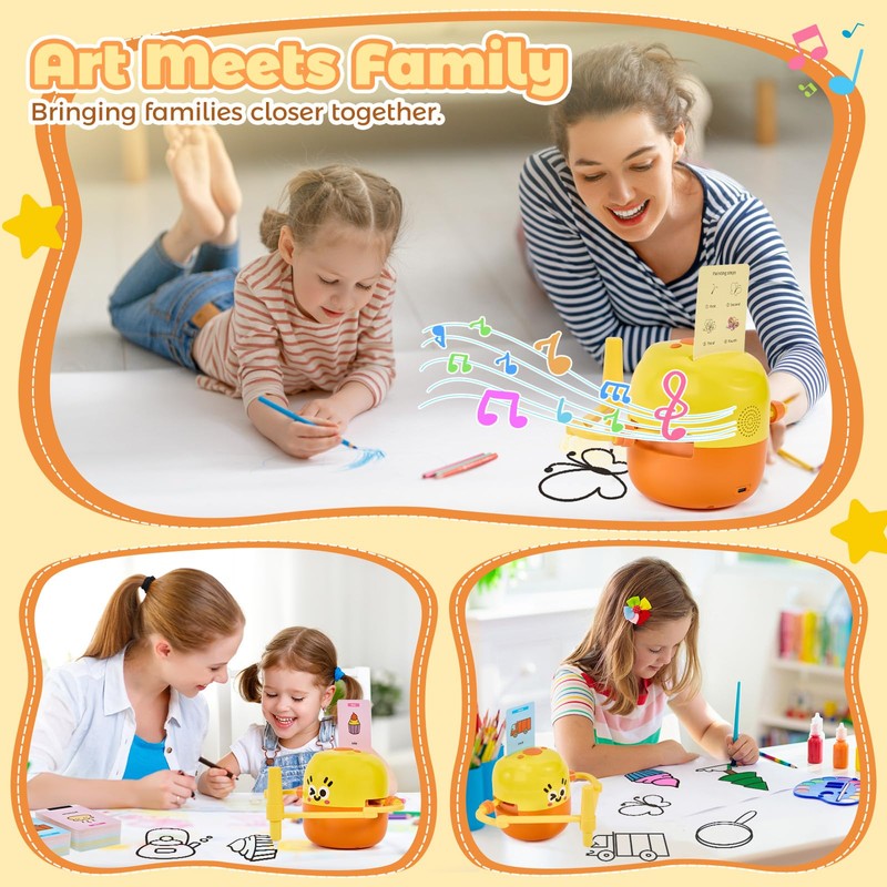 - 【Child-Safe Design】Designed specifically for kids, this drawing robot features rounded edges and high-quality non-toxic materials with no small parts. The drawing robot's intuitive card-activated operation allows children to safely enjoy drawing and music functions while developing autonomous learning and artistic sensitivity.